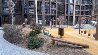 Двор-сад с авторским благоустройством, зонами отдыха, детскими и спортивными площадками.