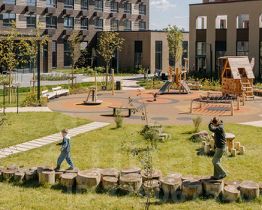 В проекте запланированы также два детских сада, две школы и паркинг. На первых этажах откроются магазины, кафе и другие сервисы — чтобы купить кофе и свежий хлеб к завтраку, можно будет просто спуститься на лифте. В уютных дворах-парках появятся места для отдыха, детские площадки, кофейни и зоны отдыха.
