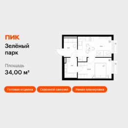 Продаётся 1-комн. квартира площадью 34 кв.м на 2 этаже 13 этажного дома (Корпус 5.3, Секция 3) проекта ПИК Зелёный парк. Светлый просторный подъезд на уровне земли, функциональная планировка, большие окна, c отделкой.