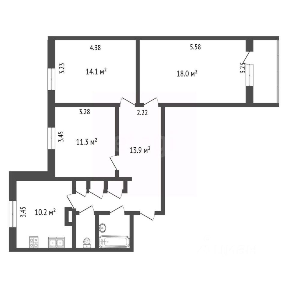 Трёхкомнатная квартира в благоустроенном районе с развитой инфраструктурой предлагает комфортное проживание для самого требовательного жильца.