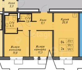 58,8 м² общей площади, где каждый метр использован максимально удобно;