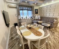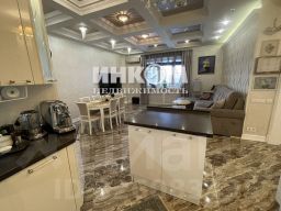О квартире: Квартира общей площадью 117,3 кв.м., с продуманной планировкой: просторная кухня-гостиная (38,3 кв.м.), две изолированные спальни (19,1 + 14,5), 3 гардеробные комнаты для удобного хранения вещей, 2 санузла, в одном из которых находится "изюминка" дома, сауна для релакса и отдыха.