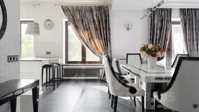 Квартира c двумя спальнями общей площадью 118 м² в комплексе бизнес-класса "Трилогия" на втором этаже. Выполнена авторская отделка с использованием итальянской мебели и декора. Интерьеры украшают декоративная кирпичная кладка, молдинги и фактурные обои из Италии.