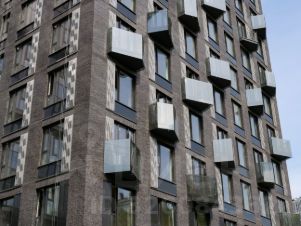 • Трехуровневая структура, где на верхнем ярусе вы увидите геометрические эркеры с панорамным остеклением, на среднем уровне расположены квартиры с окнами на 1-2 стороны, а на нижнем отделка австрийским клинкерным кирпичом.