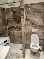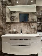 В квартире выполнен дизайнерский ремонт, что делает её стильной и современной.