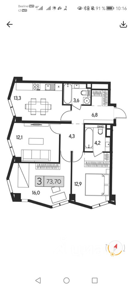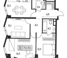 Продаётся трёхкомнатная квартира, с двумя санузлами, изолированной кухней, мастер спальней, панорамными окнами и отделкой whitebox.