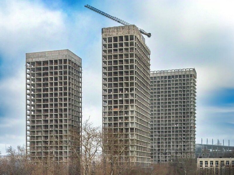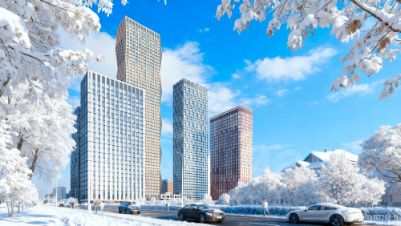 Архитектура: архитектурный облик выполнен в современном и динамичном стиле, органично вписываясь в городской ландшафт. Две башни выделяются структурно: башня D2 с антрацитовым графичным фасадом и башня D1 с латунно-золотистыми наклонными плоскостями.