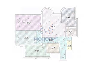 3 изолированные спальни (24.9 м2+19.1 м2+ 17.61 м2);