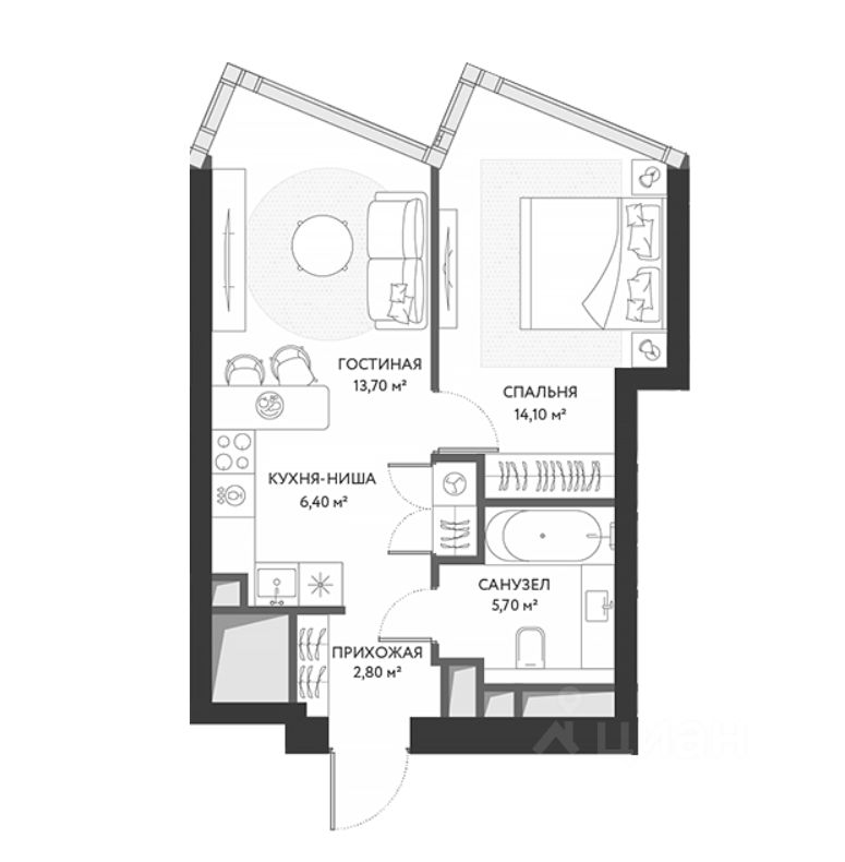Общая площадь42,7 м²