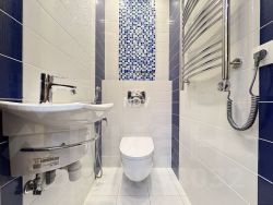 - Практичное решение для каждого члена семьи: Гармония пространства достигается благодаря грамотно спланированным зонам — отдельная ванная комната с джакузи, раздельный санузел, оборудованная душевая кабинка и гостевой туалет. Везде установлены надежные смесители Аm.Рm. Для поддержания порядка предусмотрены удобные гардеробная и кладовая комнаты.