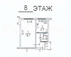 8/9 этажного панельного дома II-49 1970 г.п., общая площадь 32,4 кв.м., жилая 18,7 кв.м, кухня 6,7 кв.м., санузел совмещен, счетчики горячей и холодной воды.