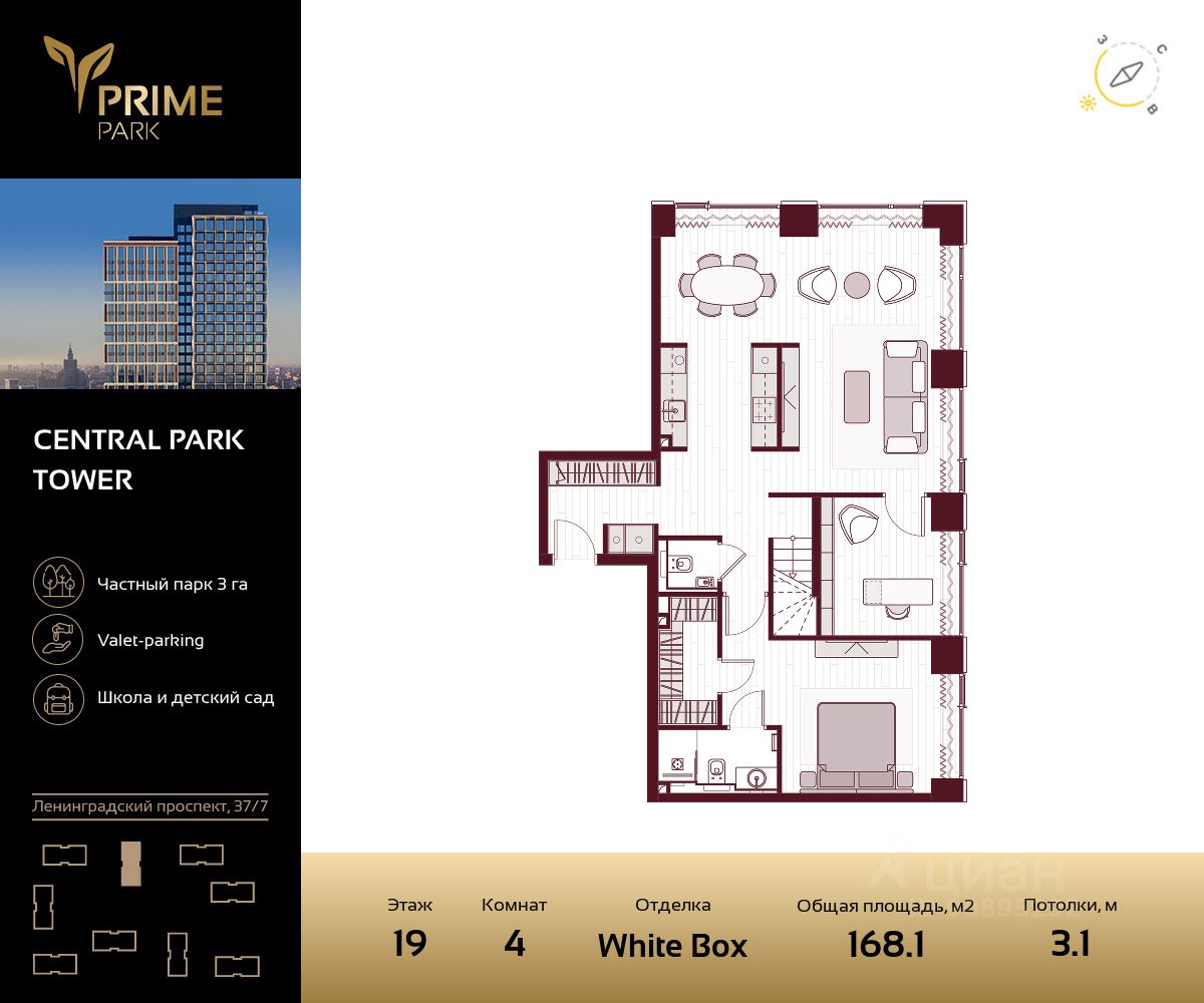 Жилой квартал премиум-класса Prime Park — оазис спокойствия и максимального комфорта с преимуществами жизни в большом городе. Он располагается на Ленинградском проспекте, 37/7, всего в 5 км от исторического центра Москвы. В пешей доступности находятся станции метро "Динамо", "Сокол", "ЦСКА" и "Петровский парк", в 10-ти минутах езды — ММДЦ "Москва-Сити", не более 20 минут займет поездка в аэропорт "Шереметьево". Концепция проекта Prime Park — это семейные резиденции премиум-класса. Квартал состоит из 9 корпусов высотой от 37 до 41 этажа. У каждой башни собственные входные группы, лобби, обслуживающий персонал. Уникальный ландшафтный дизайн составляют 4 парковые зоны, общая площадь которых 5,5 гектаров. Из них 3 гектара выделено на частный Центральный парк с авторскими арт-объектами, фонтанами, цветниками и прогулочными аллеями. Для детей разных возрастов будут построены 3 игровые площадки площадью от 170 до 400 кв. метров, включая крупный лазательный комплекс в современном стиле. Уникальная концепция проекта была неоднократно отмечена престижными наградами European Property Awards сразу в нескольких номинациях, в том числе за лучшую архитектуру высотных жилых проектов и лучшее ландшафтное благоустройство. Prime Park также удостоен премии Urban Awards за лучший жилой небоскреб в столице и лучшую управляющую компанию. Собственная инфраструктура На территории предусмотрен приватный оздоровительный центр с фитнес-клубом, 25-ти метровым бассейном, SPA-зоной и сауной, а также более 9 кафе и ресторанов, аптека, супермаркет, стоматология и службы быта. Для юных резидентов квартала появятся детский сад и британская школа с углубленным изучением английского языка. Премиальные сервисы Prime Park стал первым кварталом премиум-класса, который предложил пятизвездочные отельные сервисы. Услуги консьержей, беллменов доступны жителям квартала 24/7. Для удобства резидентов пользоваться ими можно с помощью мобильного приложения. Для автовладельцев оборудована вместительная подземная парковка с сервисом Valet-паркинга, собственной автомойкой и индивидуальными кладовыми разной площади. В холлах корпусов для посетителей созданы комфортные зоны ожидания с мягкой мебелью. Для дополнительного удобства предусмотрены сервисные комнаты, где можно помыть лапы питомцев после прогулки, оставить детскую коляску или велосипед, а также есть комната для хранения интернет-заказов и почтовая комната для отправки посылок. Безопасность Конфиденциальность частной жизни резидентов обеспечивают служба безопасности, современные системы видеонаблюдения без "слепых" зон и чувствительные противопожарные датчики. Эксклюзивный дизайн Атмосфера роскоши и спокойной уверенности нашла отражение в архитектурном облике башен и входных группах корпусов, созданном международным бюро Dyer. Облицовка внешних фасадов выполнена из натуральных долговечных материалов — немецкого клинкерного кирпича, гравированного камня и мрамора.