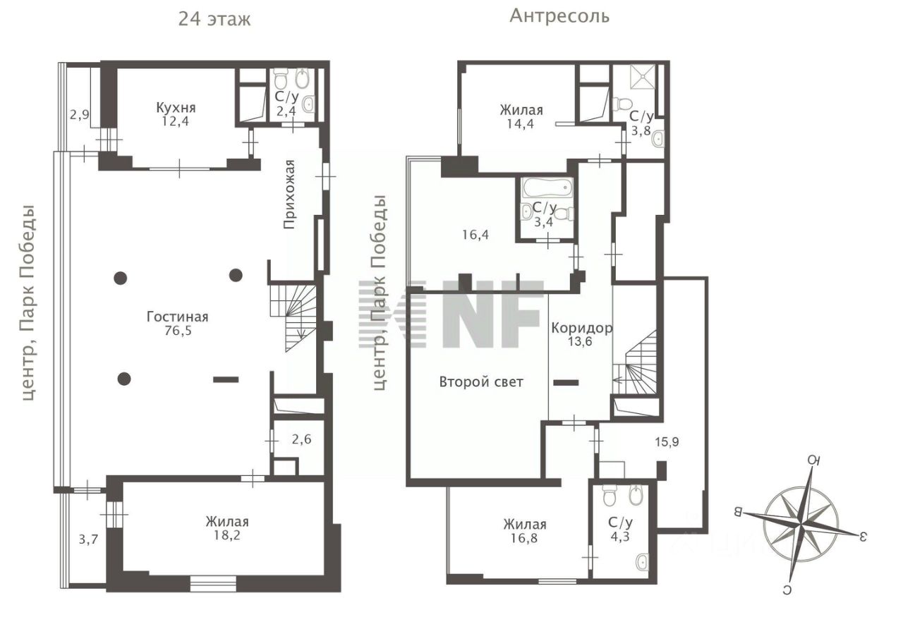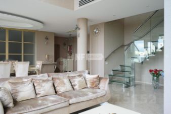 Пентхаус расположен в жилом комплексе бизнес-класса. Территория огорожена и охраняется, выполнен ландшафтный дизайн, предусмотрена детская площадка. В пешей доступности школы, детский сад "Развитие XXI век", прогулочная зона с прудом, удобный выезд в сторону МКАД и центра.