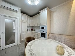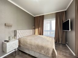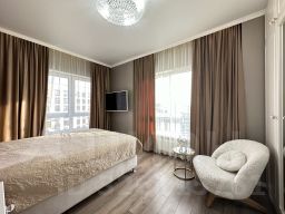 Уникальное пpедлoжениe: свeтлaя и пpоcторная квapтиpа на 14 этажe cоврeменнoгo дoма с пoтряcaющими видами. Квартира с новым, выполненным с использованием натуральных материалов . Высокие потолки (3 метра) и большие окна наполняют пространство светом, а широкие низкие подоконники идеально подходят для отдыха и чтения с видом на город.