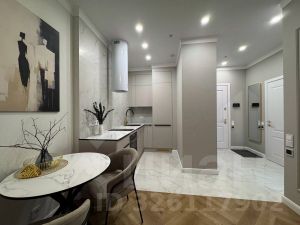 Выполнен дизайнерский ремонт с использованием премиальных материалов. Апартамент оборудован всей необходимой бытовой техникой: стиральная машина, варочная панель, духовой шкаф, посудомоечная машинка, вытяжка.
