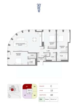 Тщательно продуманные планировки дают возможность сформировать персональное жизненное пространство, отвечающее вашему характеру и образу жизни. План вашей жилой территории гибко следует за вашими планами на жизнь. Эта территория не ограничивается стенами ваших апартаментов. Архитектура комплекса SkyView радует глаз не только снаружи, но и изнутри. Закругленная геометрия башен обеспечивает все апартаменты завораживающими видами на Москву, которая становится частью вашей домашней обстановки. Уникальный силуэт, разнообразие восприятия с разных видовых точек, максимальные видовые характеристики и одновременно приватность для жильцов комплекса.