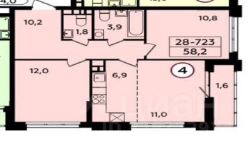 Общая площадь квартиры 58,2 кв. м., жилая 33,8 кв.м.