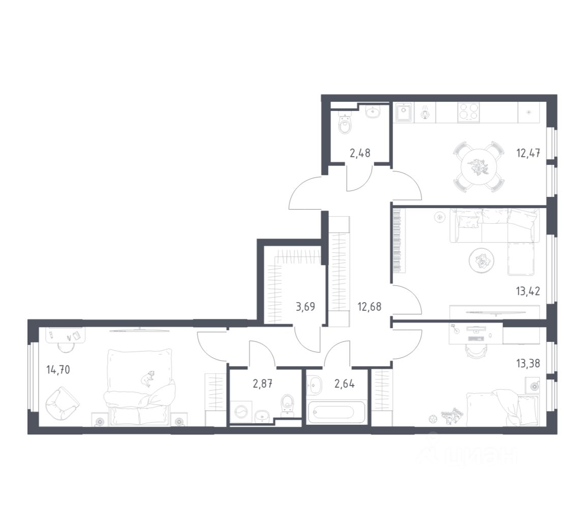 Строим кварталы для жизни с заботой о будущем. Предлагается 3-комнатная квартира комфорт-класса площадью 78,33 кв.м в корпусе 22 на 7-м этаже, в жилом комплексе "Остафьево".