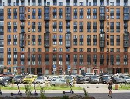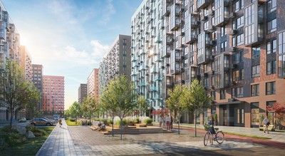 В квартале — монолитные дома комфортной высоты, от 10 этажей. Светлые фасады украшают кирпичные вставки в теплых природных оттенках.