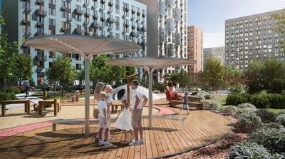 Дворы — приватные мини-парки без машин и посторонних. Кроме игровых площадок, для детей обустроили тематический плейхаб "Маяк". В будущем появятся плейхаб "Алиса в стране чудес", арт-объект "Тропа зеркал", а также большой ландшафтный парк.