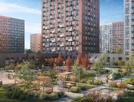 В квартале — монолитные дома комфортной высоты, от 10 этажей. Светлые фасады украшают кирпичные вставки в теплых природных оттенках.