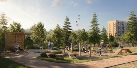 Дворы-парки будут радовать жителей цветением и зеленью: здесь высадят липы, сосны, ели, клены и сирень. Плэйхаб станет местом встреч всех любителей активного отдыха: застройщик оборудует зоны тренажеров и воркаута, площадки для игр в настольный теннис, мяч, шахматы. Также появятся современные игровые площадки для детей.