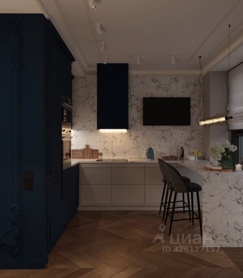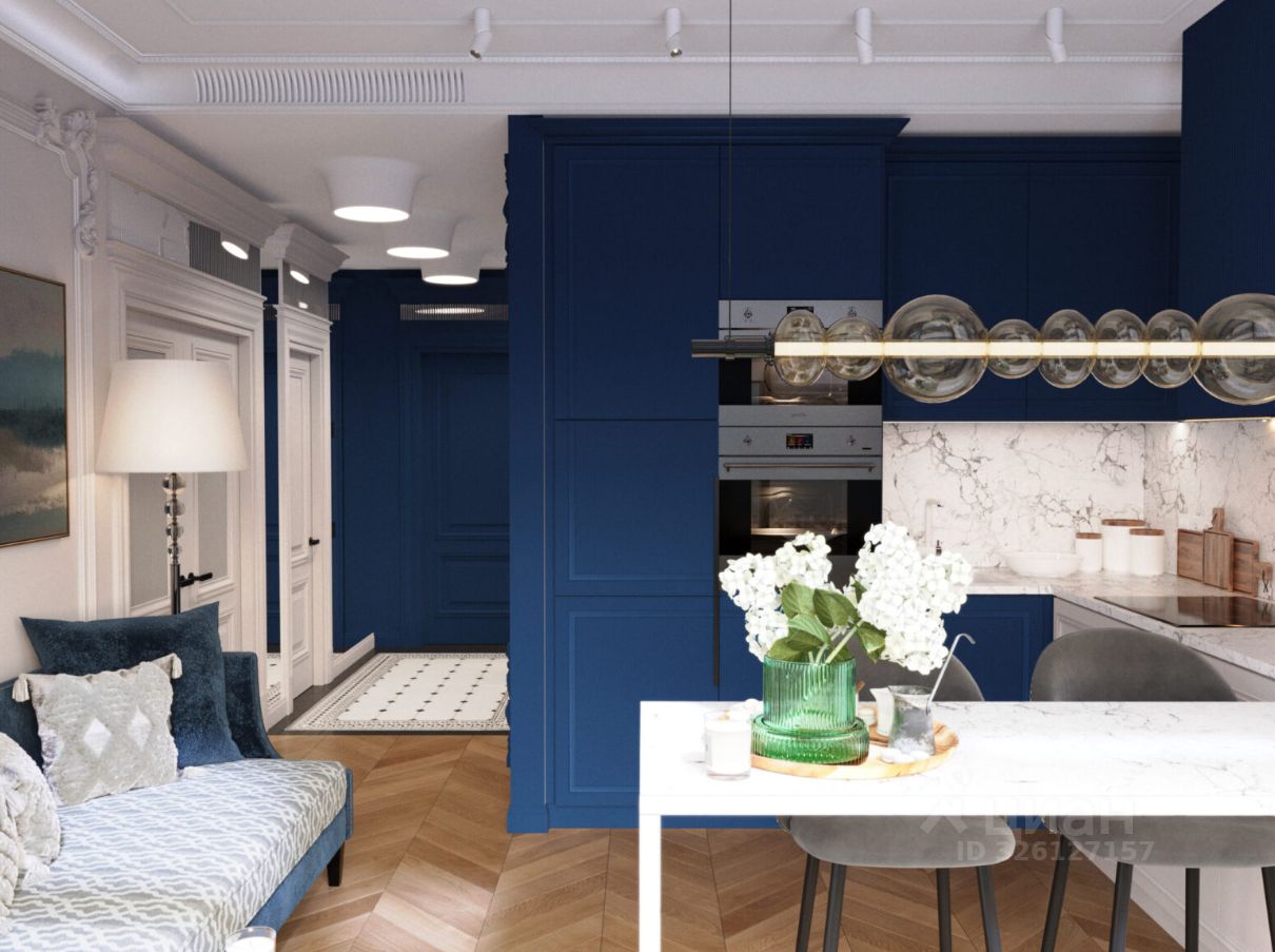 Квартира с дизайнерским ремонтом. Кухня-гостиная, спальня, гардеробная, совмещенный санузел.