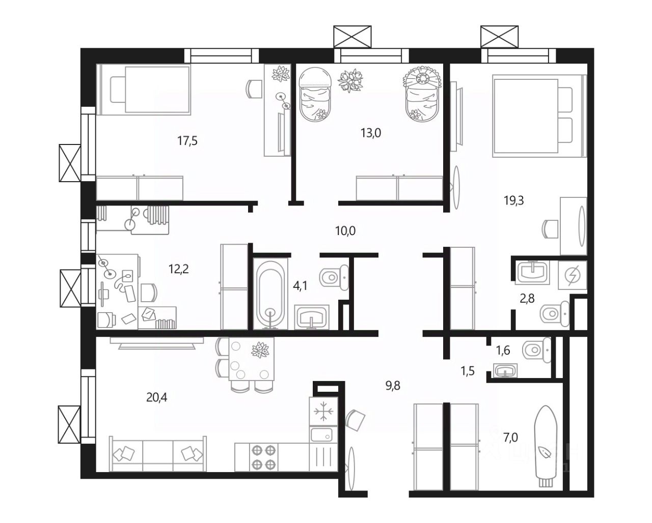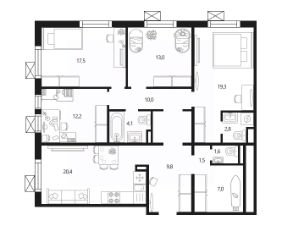 Продаётся 4-комнатная квартира в сданном доме (улица Вертолётчиков, 21к5 (Дом 21 Корпус 5 - 2 этап)), срок сдачи: III-кв. 2022, общей площадью 119.2 кв.м., на 12 этаже. Жилой комплекс "Мой адрес На Вертолетчиков" расположен всего в 10 минутах пешком от станции метро Некрасовка. Жилой комплекс состоит из четырех 18-этажных корпусов башенного типа и отдельной одноэтажной пристройки для коммерческих помещений. В жилом комплексе "мой адрес На Вертолетчиков" представлены: 544 квартиры, 119 индивидуальных кладовых и 34 коммерческих помещения.