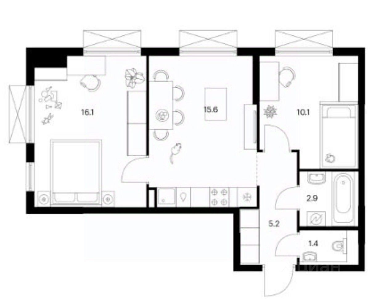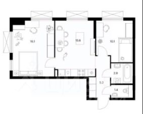 Baшему вниманию предлагается видовая Евро 2 комнатная квартира площадью 51,3 м2, расположенной на 15 этаже 17 этажного дома (Корпус 20, Секция 1) проекта Саларьево парк.