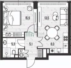 - Евро-2: кухня-гостиная + 1 спальня