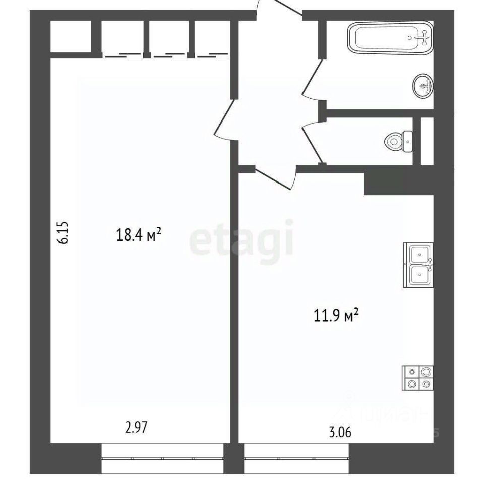 * Планировка: изолированная комната, кухня, раздельный санузел.