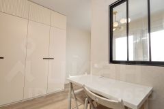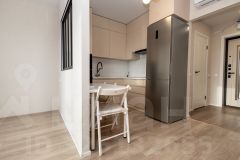 В квартире выполнен качественный современный ремонт от застройщика, так же выполнено зонирование кухни от спальни за счет перегородки. Есть вместительный шкаф для хранения в прихожей, и напротив кухни. В квартире есть новая бытовая техника: духовой шкаф, встроенная микроволновка, холодильник, варочная панель, стиральная машина. Установлена удобная душевая кабина в современном стиле black&white с встроенными полками для средств личной гигиены.