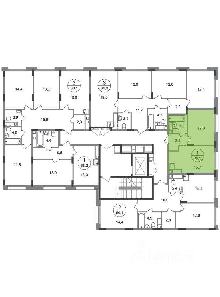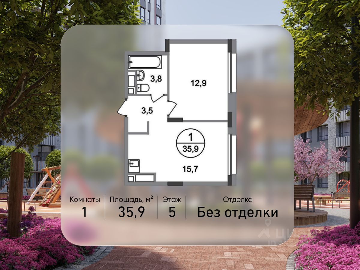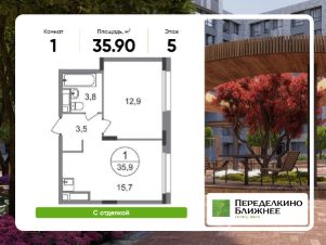 Общая площадь квартиры - 35,9 кв. м, этаж 5 из 17.