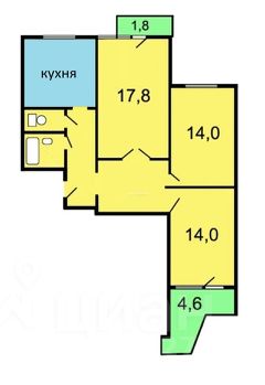 + взрослая спальня 14м2 с выходом на застекленную лоджию 4м2.