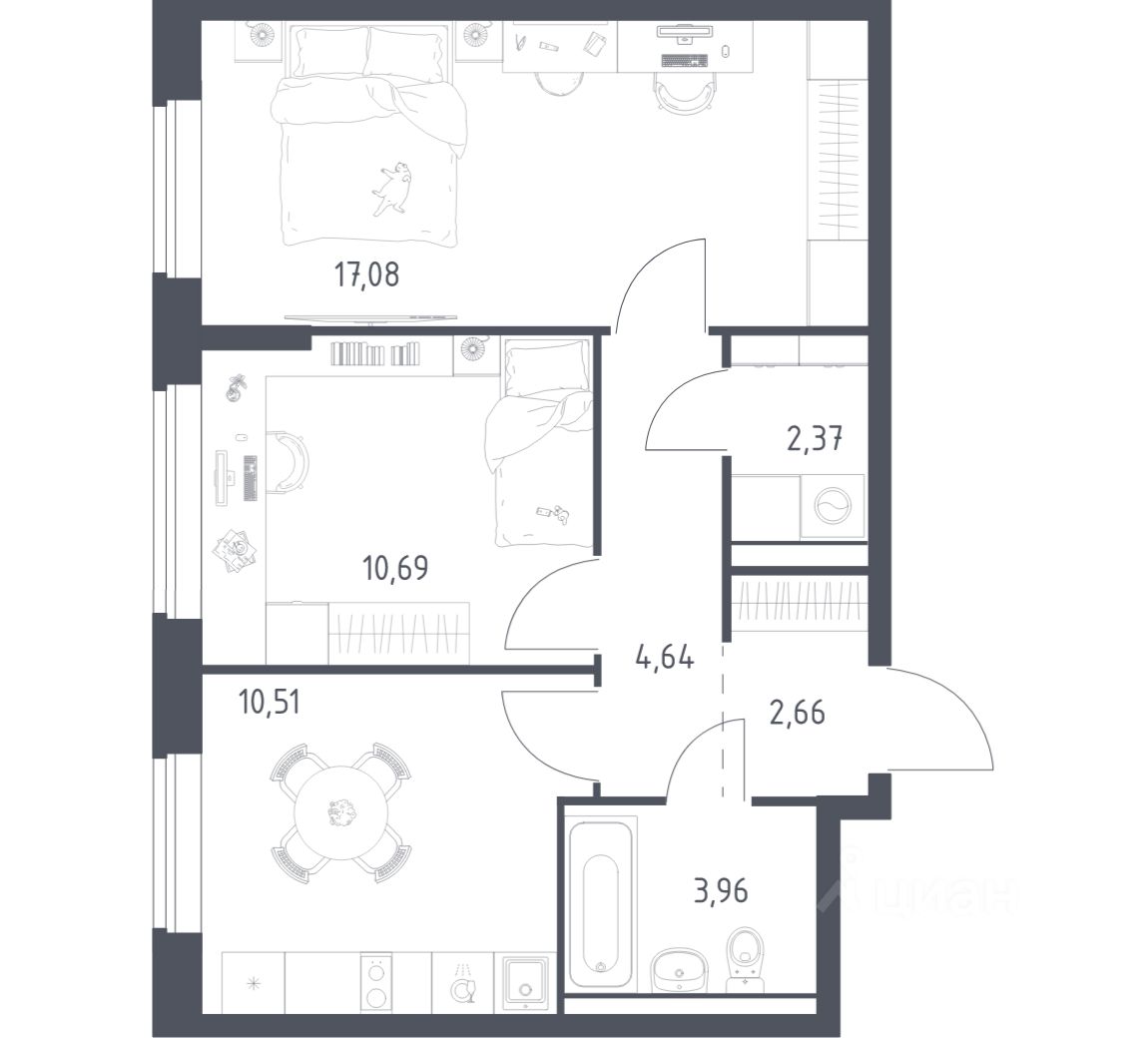 Строим кварталы для жизни с заботой о будущем. Предлагается 2-комнатная квартира комфорт-класса площадью 51,91 кв.м в корпусе 3.1 на 7-м этаже, в жилом комплексе "Егорово Парк".
