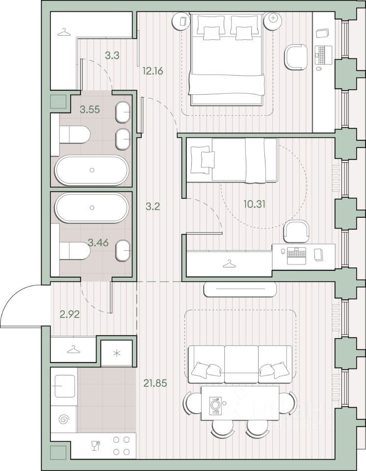 Продаётся 2-комнатная квартира общей площадью 60.75 кв.м. с отделкой white box. Квартира расположена на 25 этаже корпуса 4.1 в жилом комплексе бизнес-класса "Среда на Кутузовском" в пешей доступности от метро "Кунцевская".