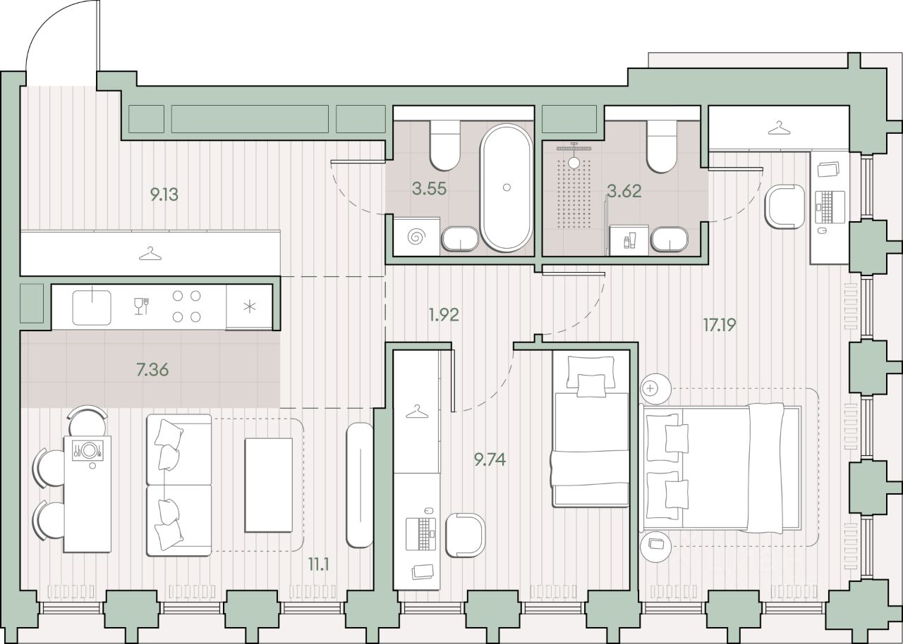Продаётся 2-комнатная квартира общей площадью 63.61 кв.м. с отделкой white box. Квартира расположена на 25 этаже корпуса 4.1 в жилом комплексе бизнес-класса "Среда на Кутузовском" в пешей доступности от метро "Кунцевская".