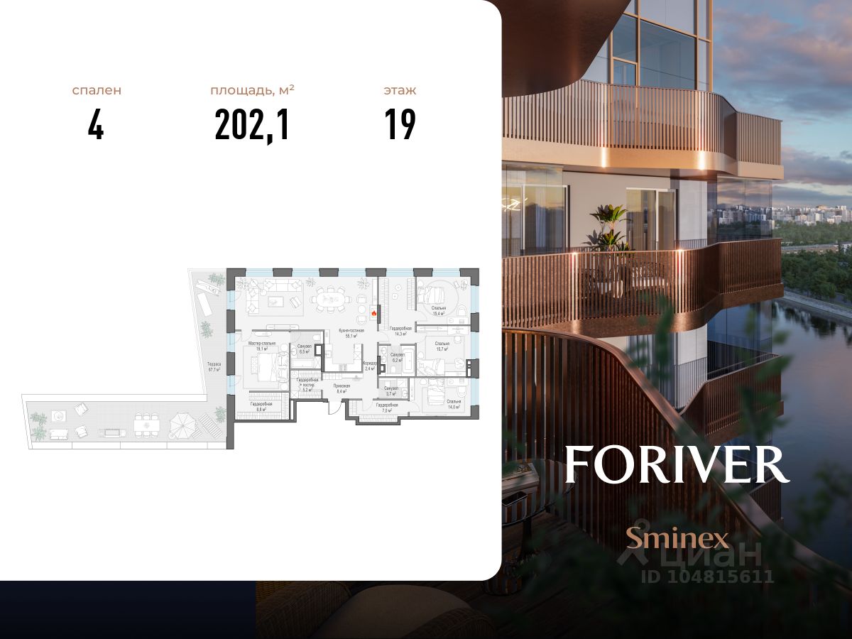 Прямая продажа от застройщика. В жилом квартале, расположенном в Даниловском районе Москвы, продаётся 4-комнатная квартира площадью 202.10 кв.м без отделки. Квартира расположена на 19 этаже 19-этажного дома, корпус Line 5, в жилом квартале бизнес-класса Foriver.