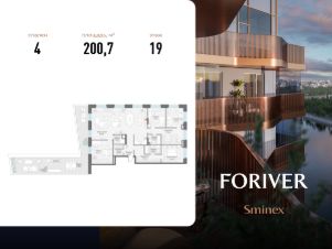 Прямая продажа от застройщика. В жилом квартале, расположенном в Даниловском районе Москвы, продаётся 4-комнатная квартира площадью 200.70 кв.м без отделки. Квартира расположена на 19 этаже 19-этажного дома, корпус Line 7, в жилом квартале бизнес-класса Foriver.