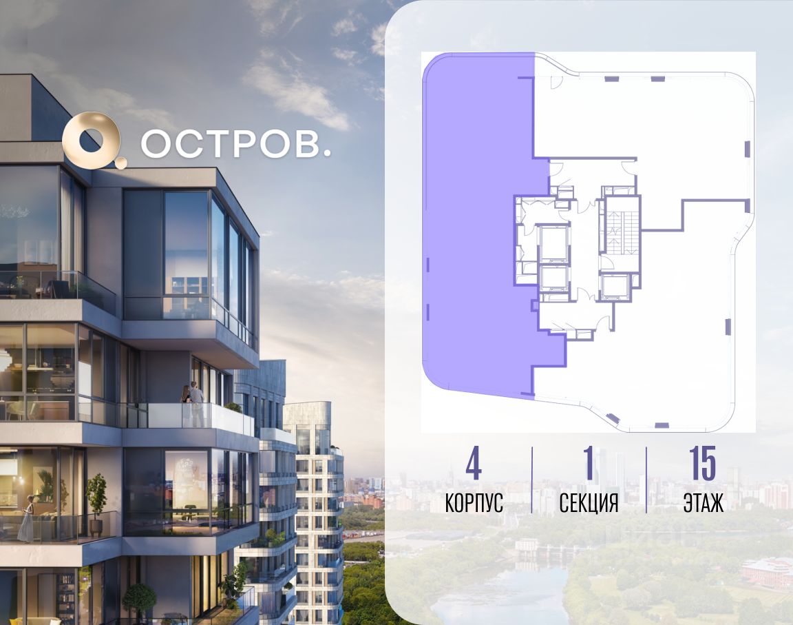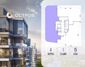 Продаётся 4-комн. квартира от застройщика: общая площадь 150.20 м², жилая 62.40 м², кухня 39.00 м², 15-й этаж, жилой квартал "Остров 12", корпус 4 (секция 1). Срок сдачи: 1 квартал 2029 года.
