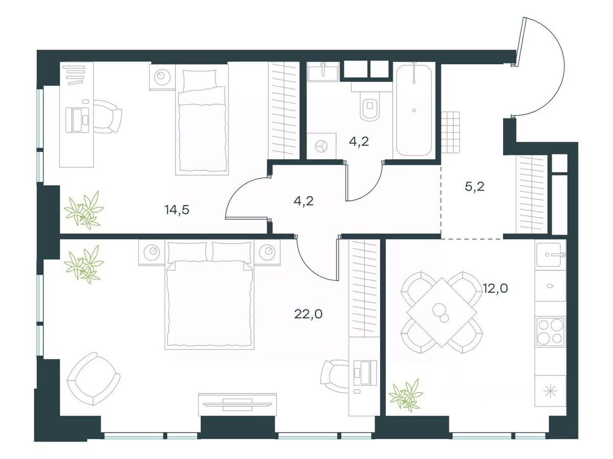 - более 20 видов планировочных решений, включая редкие форматы квартир с террасой и увеличенной высотой потолков до 5,42 метров;