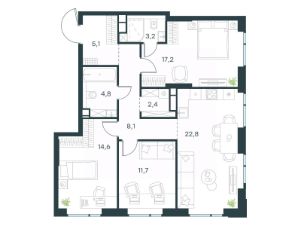 Продается 3-комнатная квартира площадью 89.90 кв. м с отделкой. Квартира находится на 6 этаже 26-этажного корпуса 4, в новом жилом комплексе бизнес-класса Level Войковская, расположенном рядом с живописным заповедником "Покровское-Стрешнево" (застройщик - компания Level Group/Левел групп).