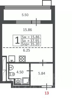 1-комн. кв., 35,2 кв.м