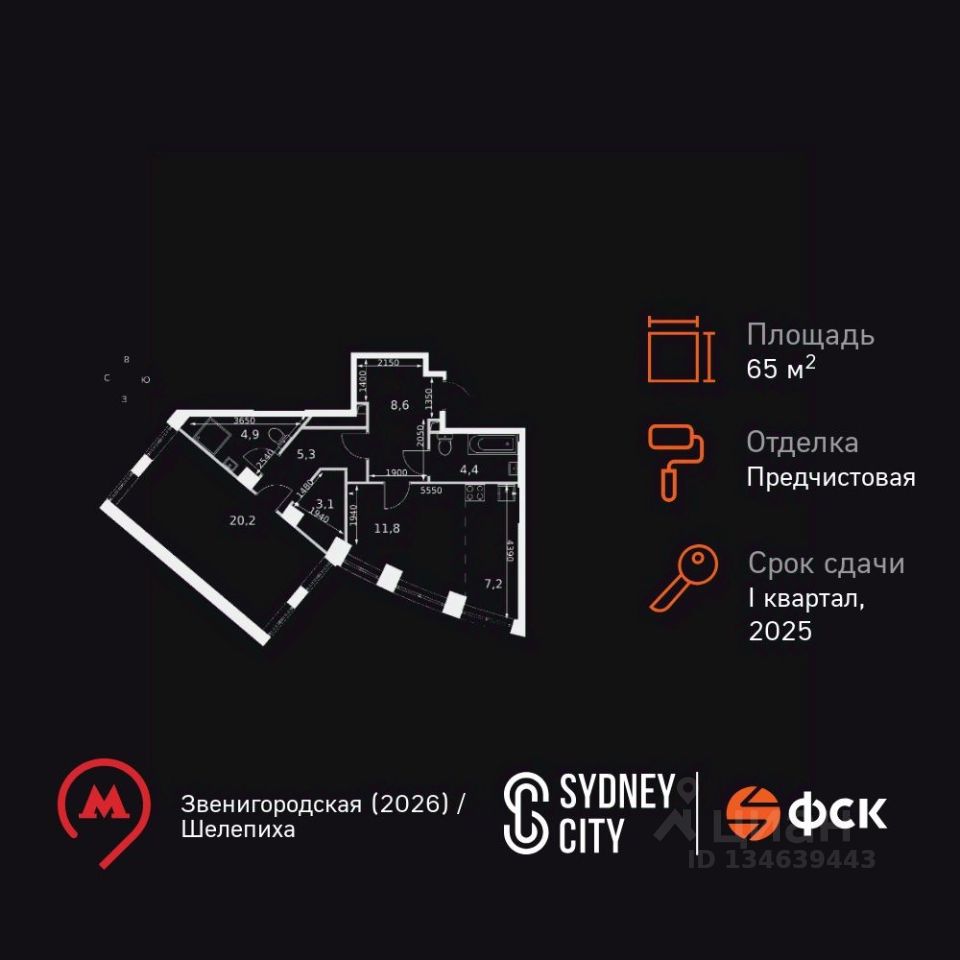 Продаётся 1-к квартира номер 317 общей площадью 65.4 кв.м. на 9-м этаже 44 этажного здания. Отделка Whitebox. Цена с учётом скидки.
