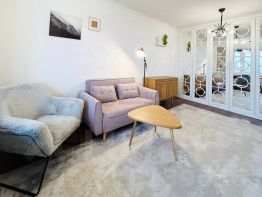 Квартира: Расположена на 8 этаже, выше только технический этаж - никаких соседей над головой. Две изолированные комнаты - спальня и гостиная, кухня 8м2, совмещенный санузел, балкон. Перепланировок не проводилось. Высота потолков 3 метра. Ремонт выполнен по самым высоким стандартам - теплые полы, дубовый паркет, мебель из натурального дерева, новая бытовая техника. Из окон открывается вид на площадь Гагарина, что гарантирует красивую панораму круглый год.