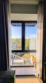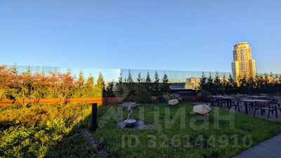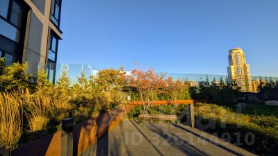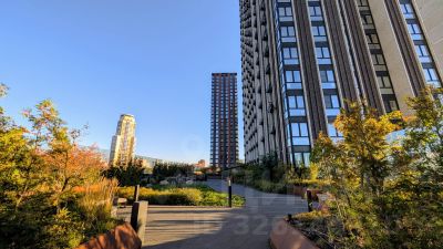 4 башни ЖК бизнес класса Дискавери Парк соединяет большой стилобат со скамейками, прогулочной зоной, тренажёрами и качелями для детей, вход только для собственников. Квартира находится на шестом этаже, отсюда как раз выход на стилобат.