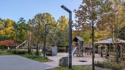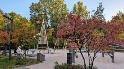 Вокруг дома два больших парка с прогулочными зонами, пляжем и волейбольной площадкой. На закрытой территории ЖК есть оборудованные детские площадки и детский сад Discovery.