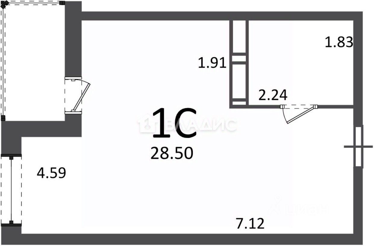 Общая площадь квартиры составляет 28,5 кв. м, из которых жилая площадь — 18,4 кв. м, а площадь кухни — 6 кв. м. Высота потолков — 3 метра, что создаёт ощущение простора и свободы. Квартира с окнами на улицу, есть балкон, вид на юго-запад( во двор/лес)