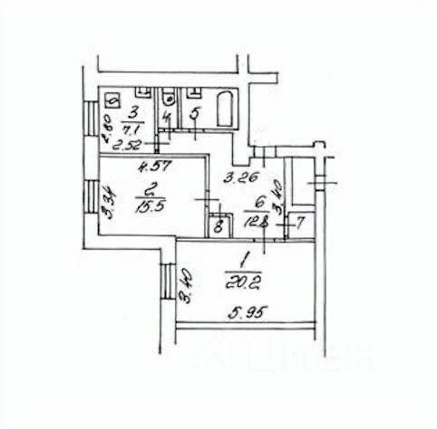 Квартира расположена на 3м этаже 5ти этажного кирпичного дома, окна выходят во двор.