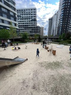 вид во двор (на детский сад и школу). очень тихая квартира, под окнами двор без машин.